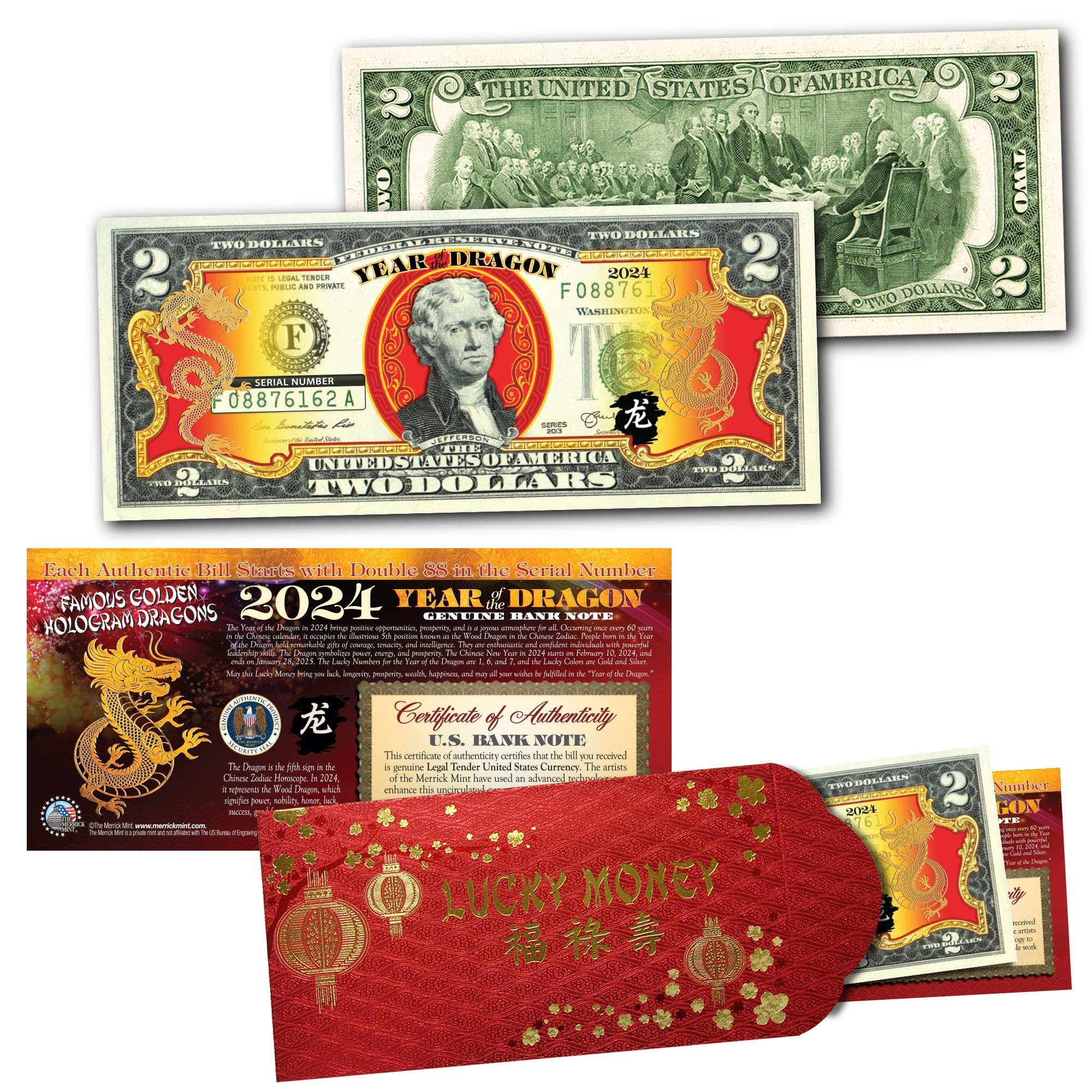 2024 CNY Chinese Lunar New Year US $2 BILL GOLD HOLOGRAM YEAR OF